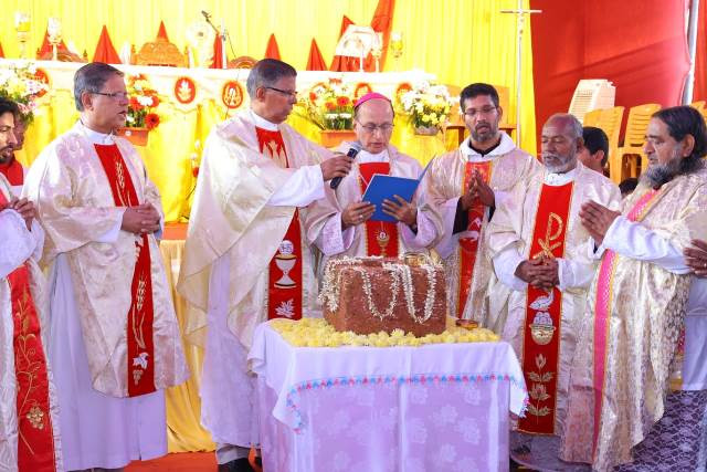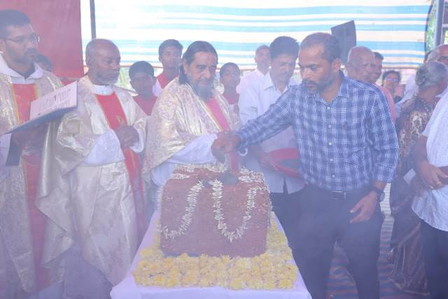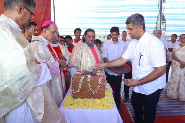 ಕಾರ್ಕಳ, ಫೆ.21: ಉಡುಪಿ ಧರ್ಮಪ್ರಾಂತ್ಯದ ಬಿಷಪ್ ಡಾ.ಜೆರಾಲ್ಡ್ ಐಸಾಕ್ ಲೋಬೋ ಅವರು ಇತರ ಗಣ್ಯರೊಂದಿಗೆ ಶಿಲಾನ್ಯಾಸವನ್ನು ನೆರವೇರಿಸಿದರು.ಇಲ್ಲಿನ ಸೇಂಟ್ ಅಂತೋನಿ ದೇವಸ್ಥಾನವು ತನ್ನ ಸುವರ್ಣ ಮಹೋತ್ಸವವನ್ನು ಆಚರಿಸುತ್ತಿದೆ, ದೇಗುಲಕ್ಕೆ ಭೇಟಿ ನೀಡುವ ಭಕ್ತಾದಿಗಳ ಸಂಖ್ಯೆಯು ತೀವ್ರವಾಗಿ ಬೆಳೆದಿದೆ, ಹೊಸ ಮತ್ತು ವಿಶಾಲವಾದ ದೇಗುಲದ ಅಗತ್ಯವನ್ನು ಪರಿಗಣಿಸಿ, ಹೊಸ ಕಟ್ಟಡದ ಯೋಜನೆಯನ್ನು ಪ್ರಾರಂಭಿಸಲಾಗಿದೆ. ಯೋಜನೆಯ ಒಟ್ಟು ವೆಚ್ಚ 6.5 ಕೋಟಿ ರೂ.