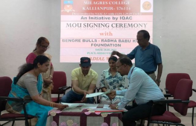 Milagres College, Kallianpur, signed a unique MoU signed with ‘Bengre Bulls’ supported by ‘Radha Babu Kotian Foundation’ - February 28, 2024.