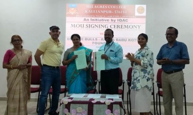 Milagres College, Kallianpur, signed a unique MoU signed with ‘Bengre Bulls’ supported by ‘Radha Babu Kotian Foundation’