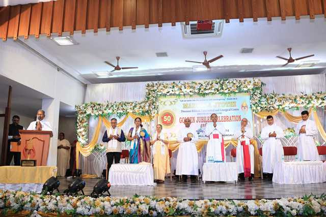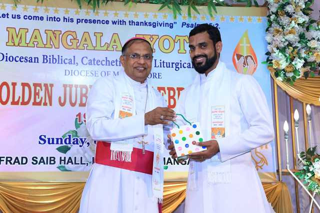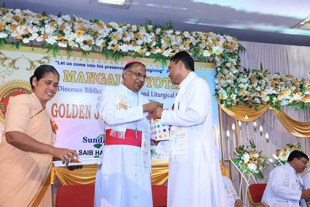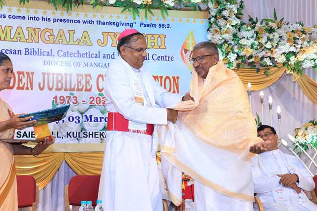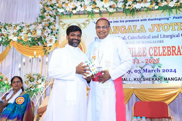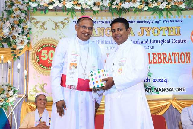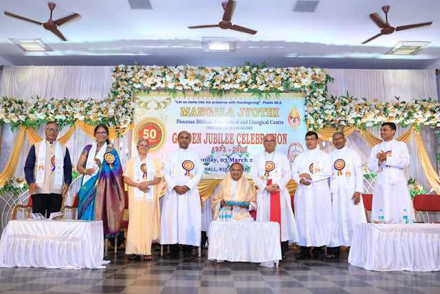 MANGALORE, MARCH 03: Mangala Jyothi (MJ), the diocesan Biblical, Catechetical, and Liturgical Centre of the Diocese of Mangalore, commemorated its golden Jubilee on March 03, 2024, at the Holy Cross Church, Kulshekar, Mangalore.