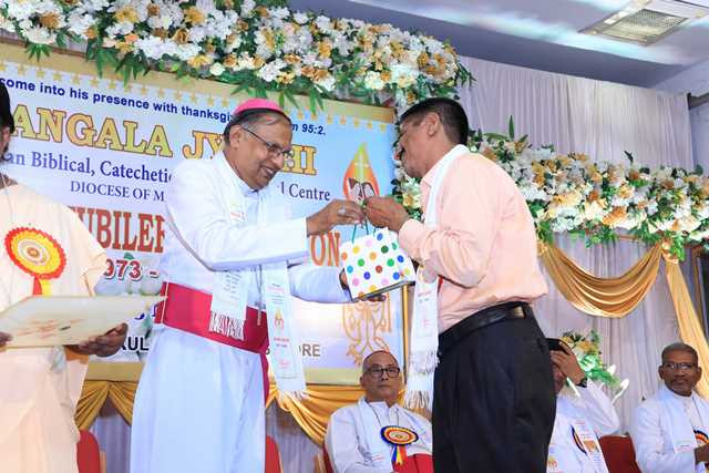 Bishop George Pilliparambil, the chief guest, commended MJ for its catechetical formation and emphasised the importance of faith-sharing experiences. “I am very much edified by the faith of the people and catechesis and formation programmes carried out by Mangala Jyothi,” Bishop George added. He also honoured Bishop Peter Paul Saldanha for his role as Chairman of the CCBI Commission for Liturgy.