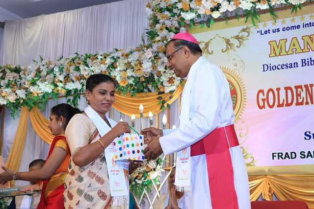 In his presidential address, Bishop Peter Paul Saldanha praised the significant contributions of MJ, its directors, assistant directors, catechists, teachers, and formators. Bishop Peter said, “We have a systematic faith catechesis programme in our diocese which has been recognised by the other dioceses in India.” The Bishop also congratulated and blessed all the top scorers and wished them well.
