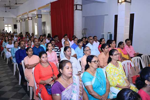 Following the Eucharist, a formal programme took place at the Frad Said Hall, Cordel. Most Rev. Dr Peter Paul Saldanha, Most Rev. Dr George Palliparambil, Dr John DSilva, Secretary, Mangalore Diocese Pastoral Parishad, Dr Judy Pinto, Ex Vice Principal, St Aloysius College and Family Counsellor, Sr Sevrine Crasta Provincial Council member, UFS, Mangalore, Rev. Fr Santhosh Rodrigues, Director, Pastoral Centre, Fr Clifford Fernandes, Fr Vijay Machado and Fr Vincent Sequeira were the dignitaries on the dais.