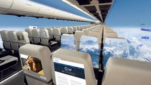 They said, "The days of glimpsing the world through a tiny plastic porthole when you fly are soon to be a thing of the past; future aircrafts will offer a crystal clear panoramic view without any windows at all. We are developing ultra-flexible, high-definition display technologies that could line the interior walls of cabins and display live footage from external cameras."